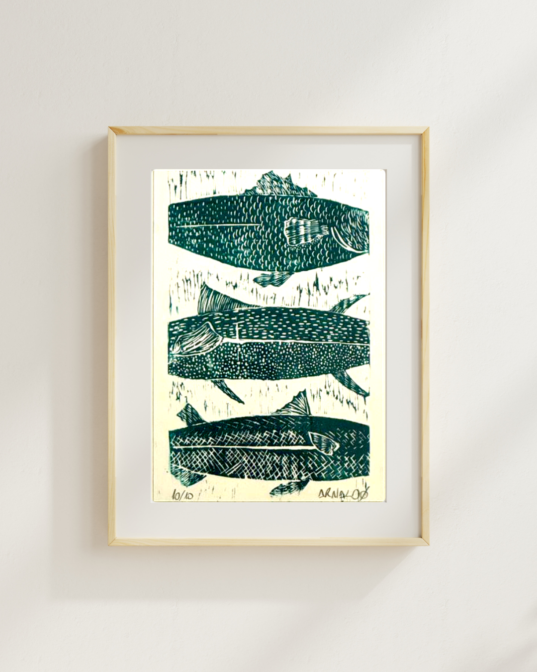 Nadadeira Dorsal Gravura realizada em papel Markato 300g/cm2, com formato de 48cm x 60cm. Tiragem de 10 unidades. — Gravura enviada sem moldura. Para encomendar molduras artesanais personalizadas, por favor entre em contato.