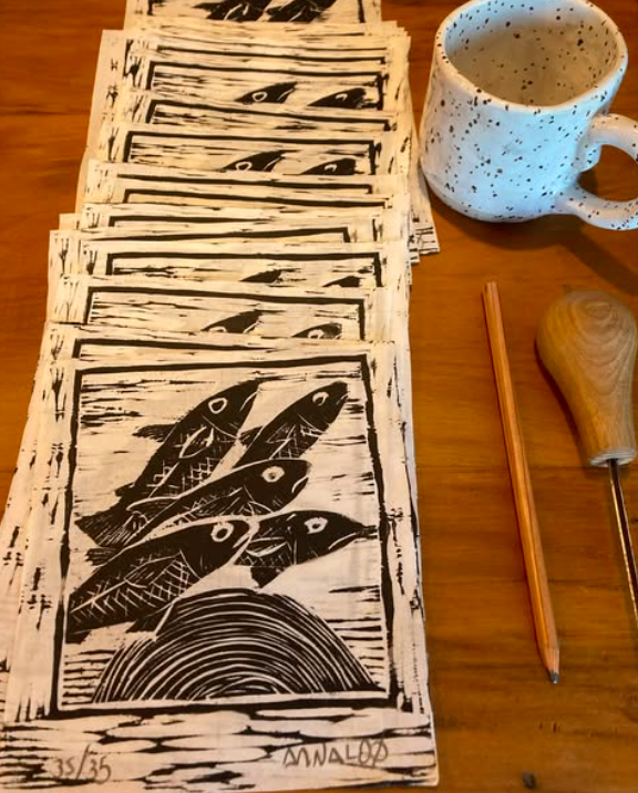 This is a xilogravure,  hand made carved into a block of Pinus wood. The scene captures the Piracema, the sacred moment when fish swim against the current, leaping and running up the river to spawn. The image was printed using a rich, oil-based ink, which was hand pressed with Baren into a delicate sheet of […]